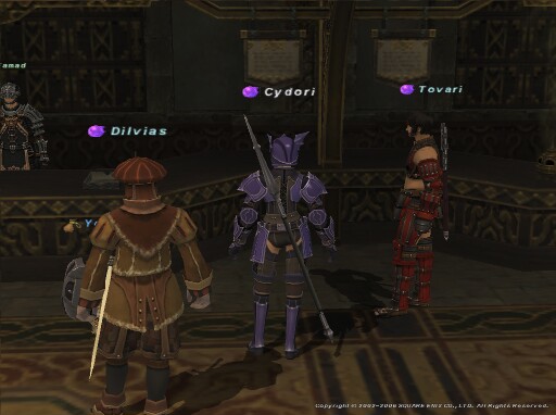 I need to look up the stats on BRD AF, because (assuming we keep going with these jobs) I don't want to even quest for it. It's fuzzy and ugly and the footwear is slippers. Gah! "Slippers"! How in the world can any adventurer run around in fricking SLIPPERS. >< Slippers! And I see no metal anywhere on that AF! And are those tights? Gah. And what the hell is up with that hat?
